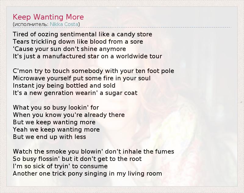 А как ты думаешь, о чем песня "Keep Wanting More" ?
