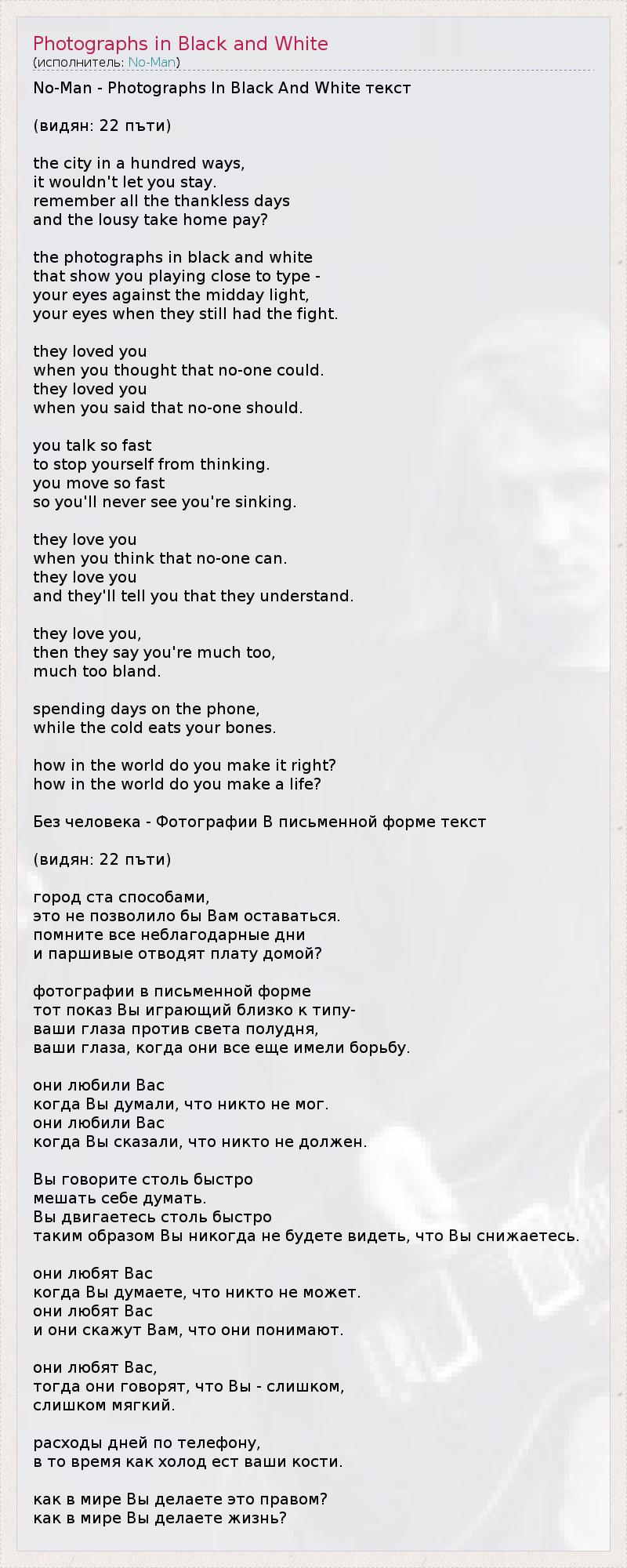 А как ты думаешь, о чем песня "Photographs in Black and White" ?
