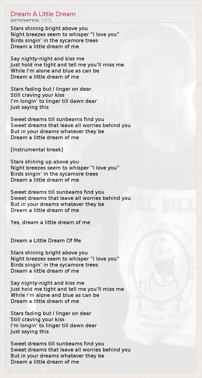 А как ты думаешь, о чем песня "Dream A Little Dream" ?