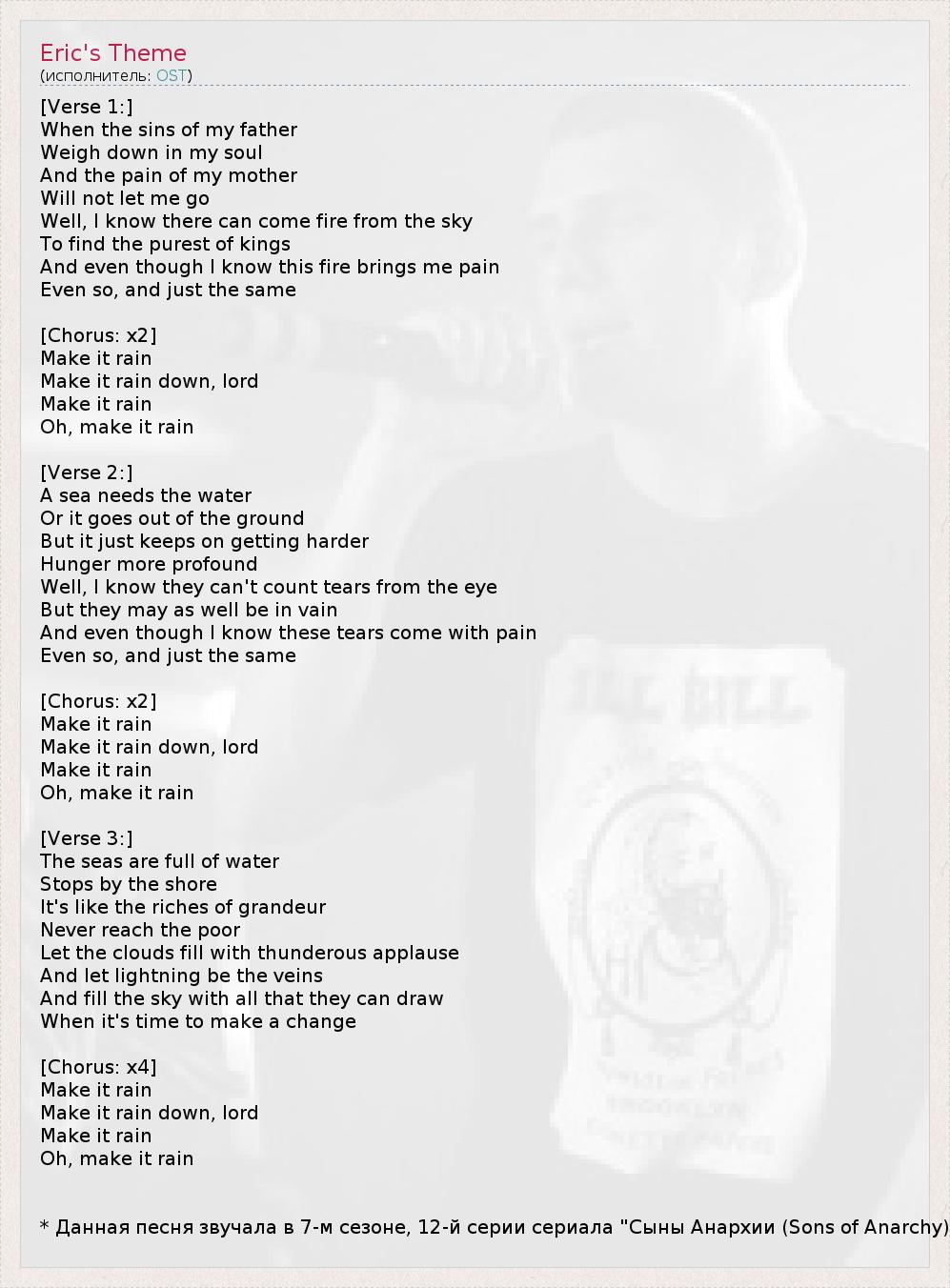 * Данная песня звучала в 7-м сезоне, 12-й серии сериала "Сыны Анархии (Sons of Anarchy)