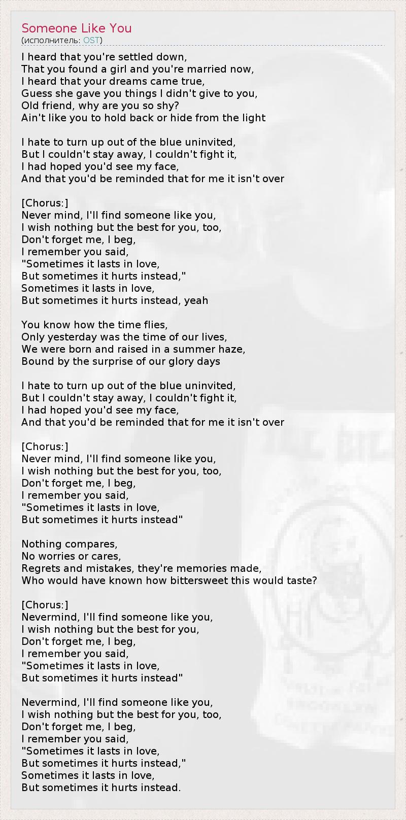 А как ты думаешь, о чем песня "Someone Like You" ?