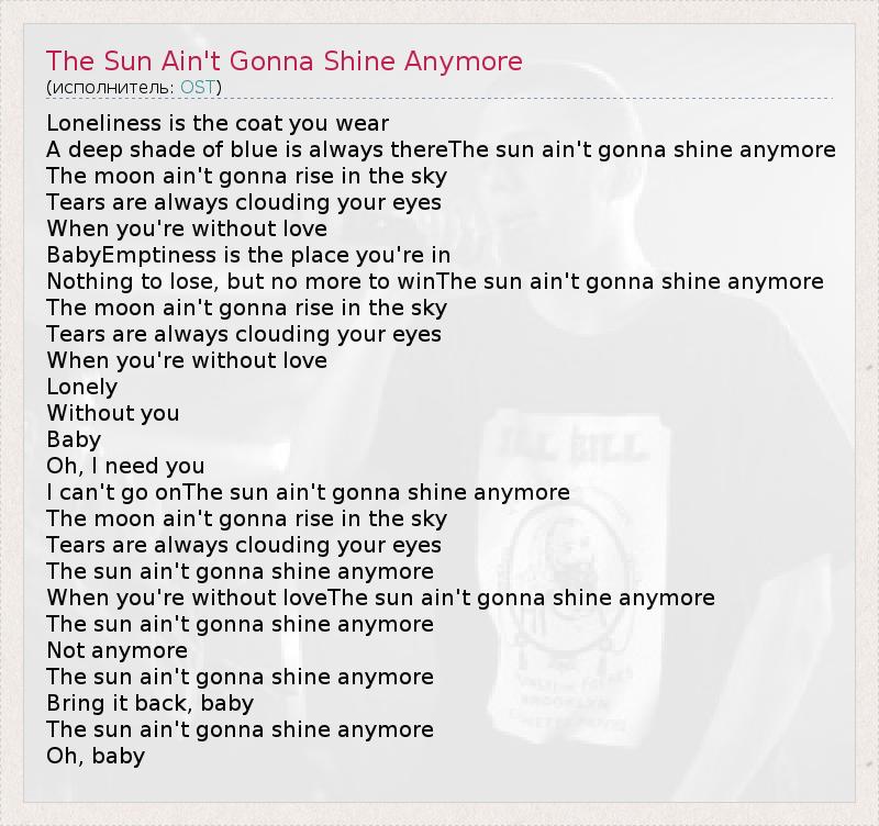 А как ты думаешь, о чем песня "The Sun Ain't Gonna Shine Anymore" ?