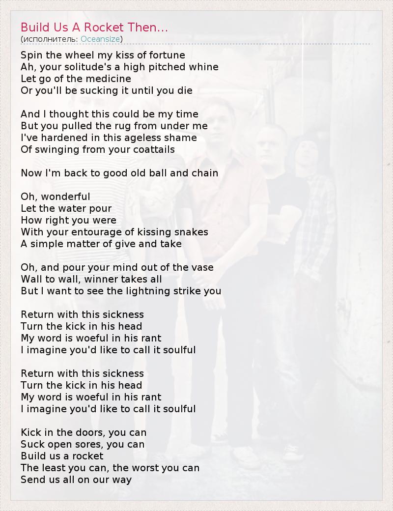А как ты думаешь, о чем песня "Build Us A Rocket Then..." ?