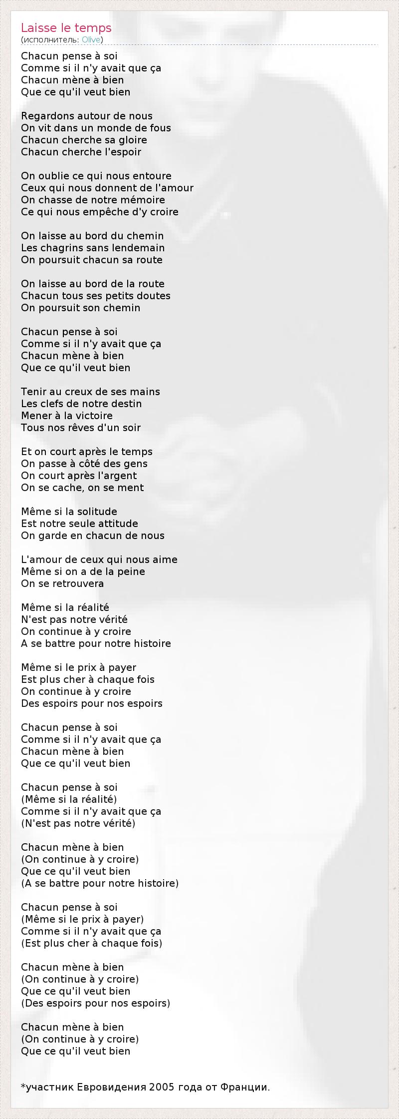 А как ты думаешь, о чем песня "Laisse le temps" ?