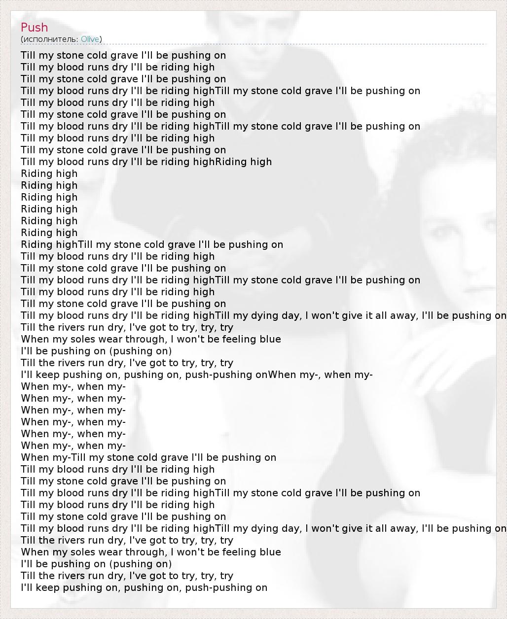 I'll keep pushing on, pushing on, push-pushing onWhen my-, when my-