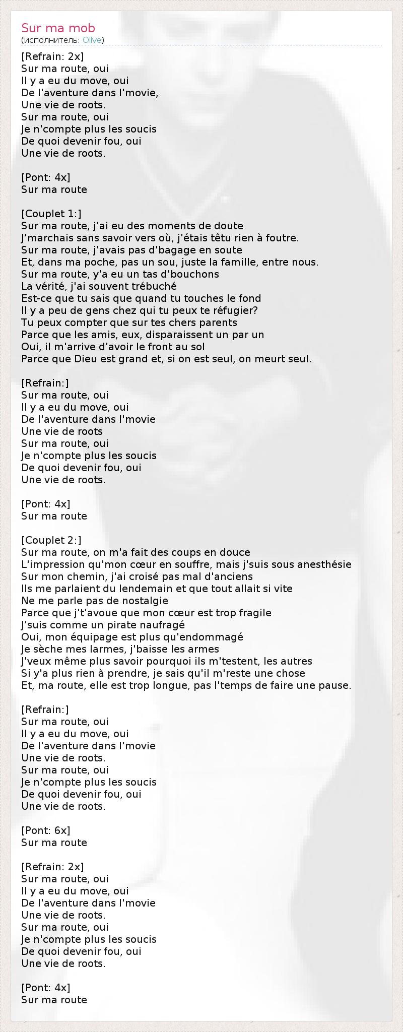 А как ты думаешь, о чем песня "Sur ma mob" ?