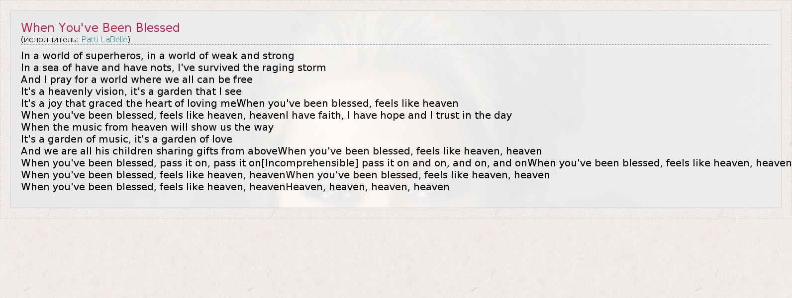 ГлавнаяИсполнителиPatti LaBelleWhen You've Been Blessed
