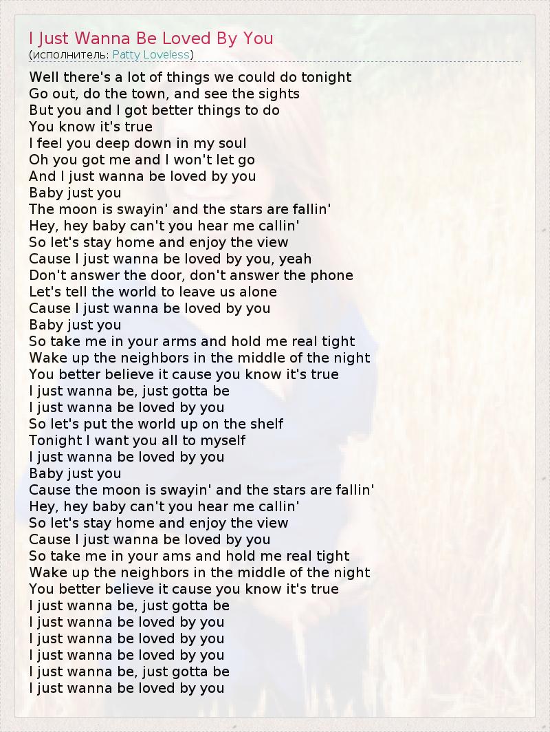 ГлавнаяИсполнителиPatty LovelessI Just Wanna Be Loved By You
