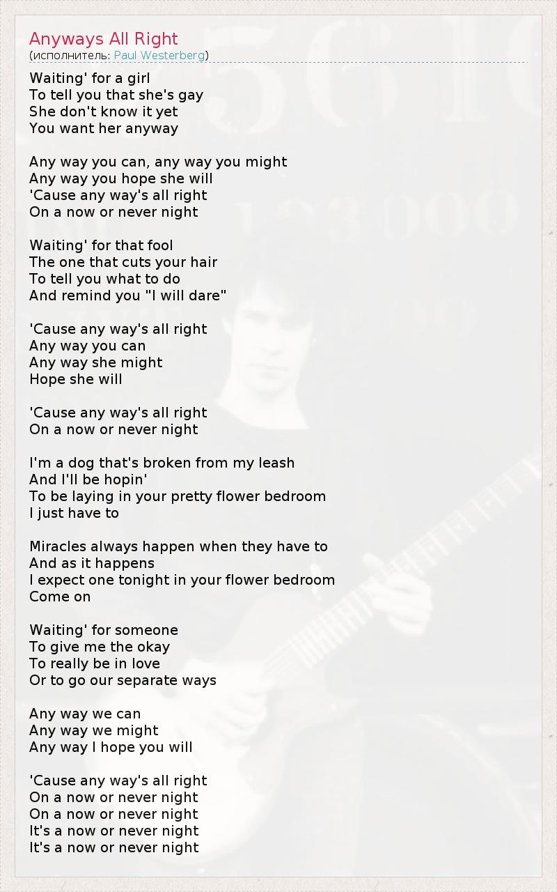 А как ты думаешь, о чем песня "Anyways All Right" ?