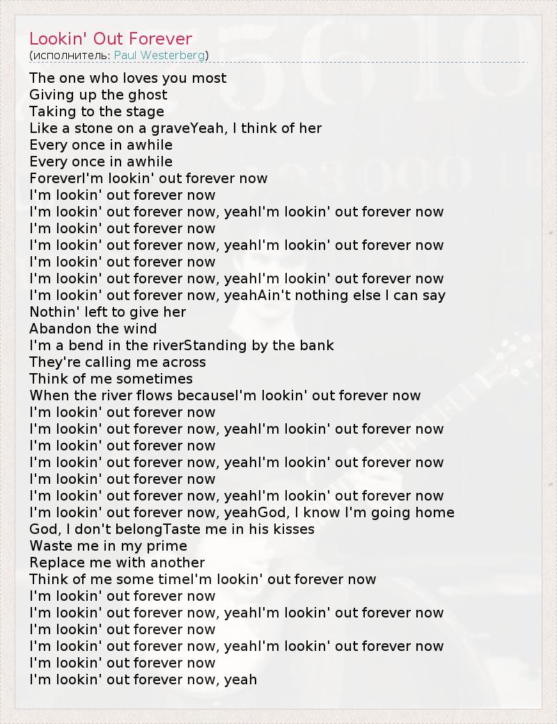 А как ты думаешь, о чем песня "Lookin' Out Forever" ?