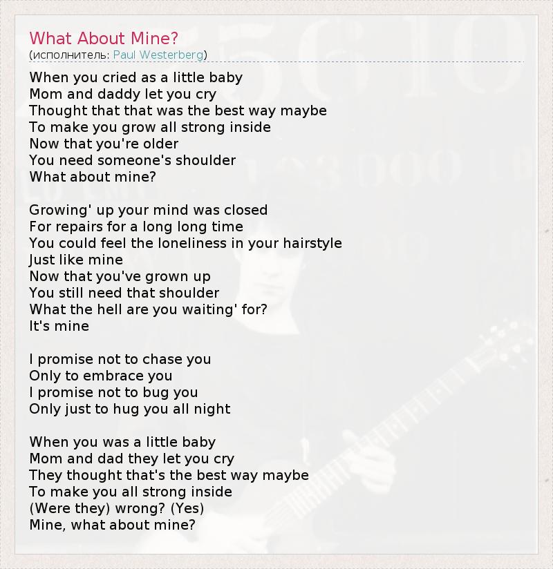 А как ты думаешь, о чем песня "What About Mine?" ?