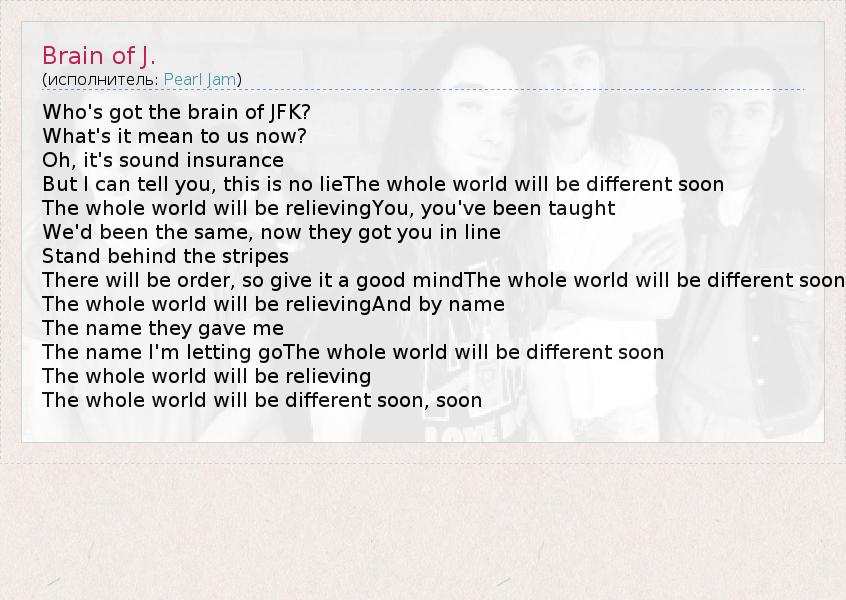 Это интересно:Одна из четырех главных групп (наряду с Nirvana, Soundgarden и Alice in Chains) музыкального движения гранж, пользовавшегося большой популярностью в первой половине 1990-х годов. Более того, и в XXI веке Pearl Jam пока не торопятся завязывать с музыкой – несмотря на то, что их новые работы не достигают того же уровня популярности, что был у их первых альбомов... продолжение