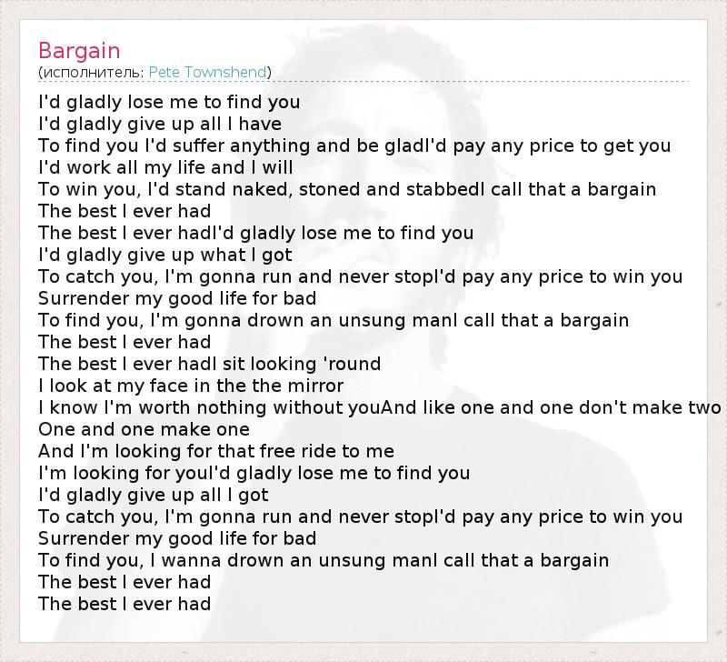 To find you, I'm gonna drown an unsung manI call that a bargain