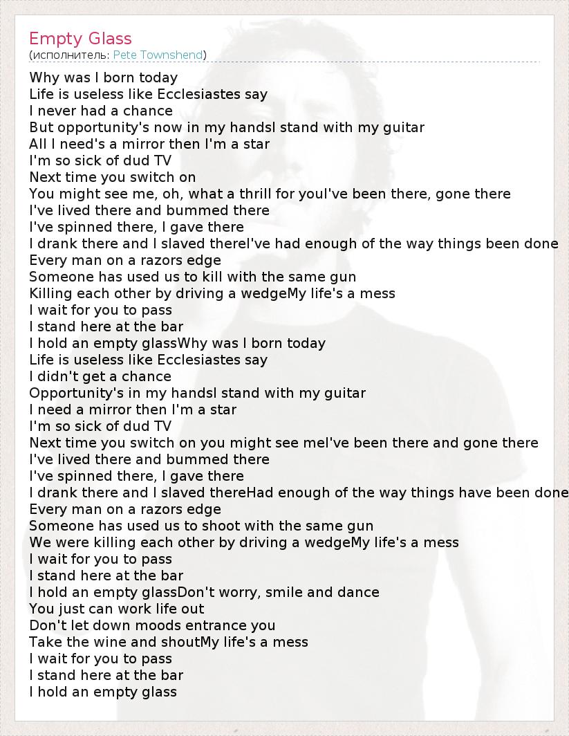 А как ты думаешь, о чем песня "Empty Glass" ?