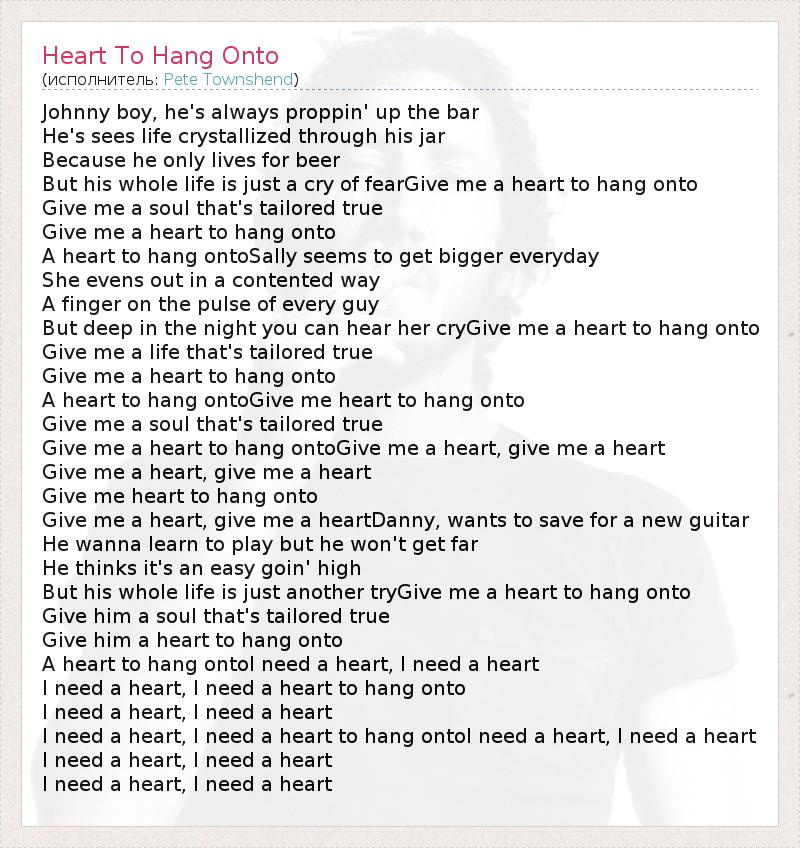 А как ты думаешь, о чем песня "Heart To Hang Onto" ?