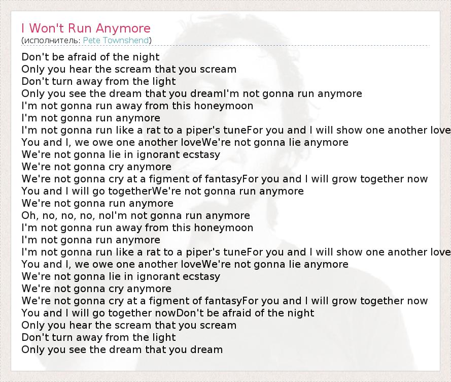 А как ты думаешь, о чем песня "I Won't Run Anymore" ?