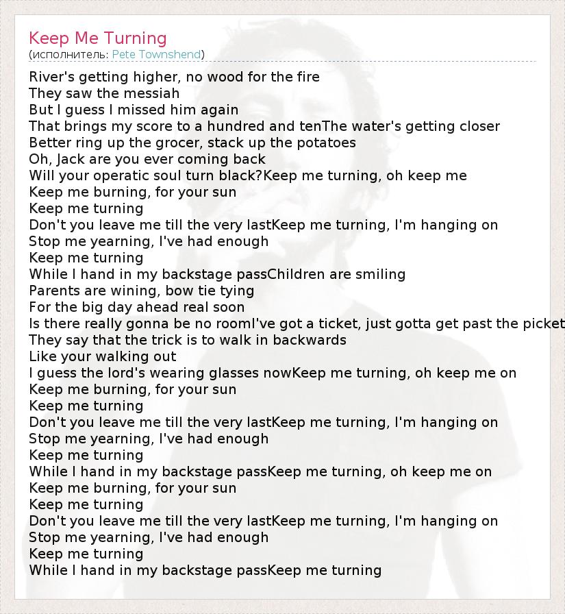 А как ты думаешь, о чем песня "Keep Me Turning" ?