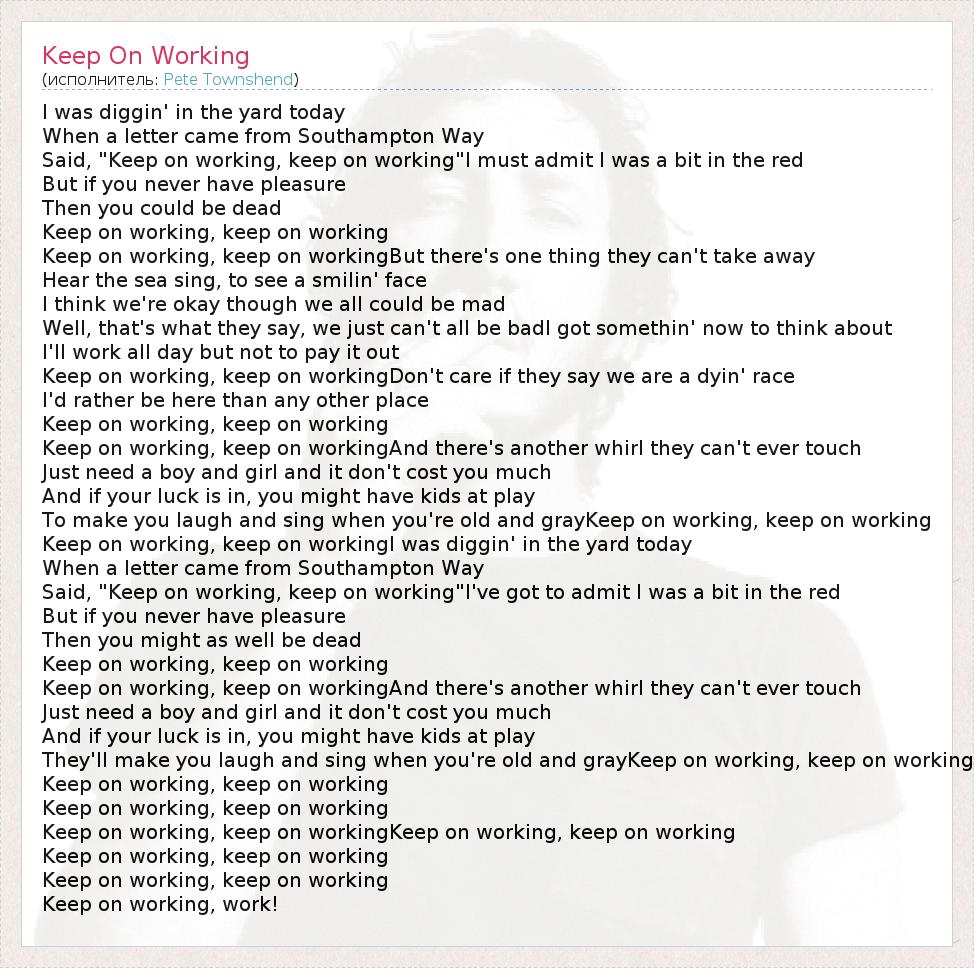 А как ты думаешь, о чем песня "Keep On Working" ?