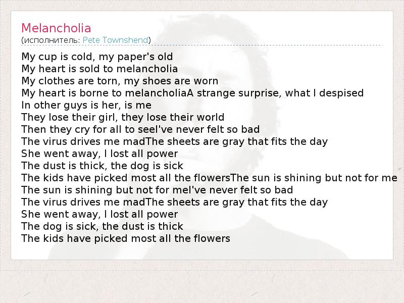 Это интересно:Пит Таунсенд (Pete Townshend) — британский рок-гитарист, певец, лидер легендарной группы The Who. Основной автор свыше 100 песен группы, а также рок-опер «Томми» и «Квадрофения». Пит Таунсенд родился 19 мая 1945 года в Лондоне, в семье саксофониста биг-бенда и певицы. "Я даже не хочу думать о том, что бы случилось, если бы я появился на свет в семье, слушающей классику", - говорил Таунсенд. За гитару... продолжение