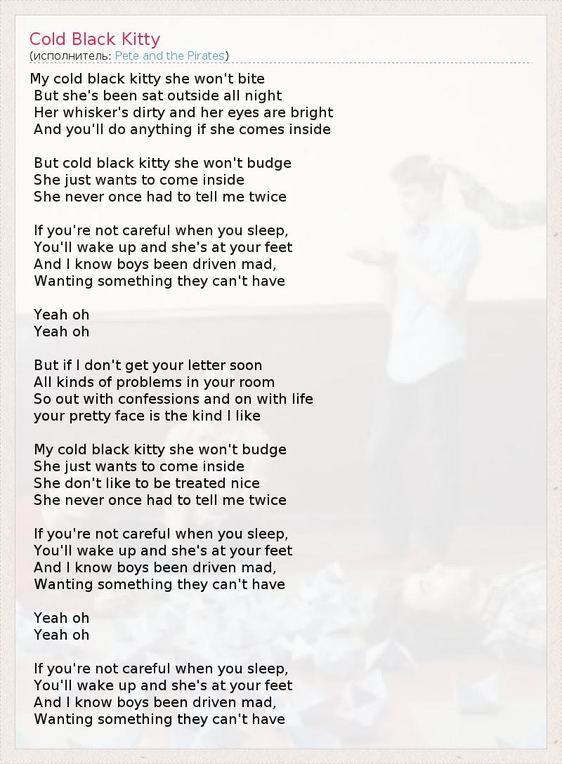 А как ты думаешь, о чем песня "Cold Black Kitty" ?
