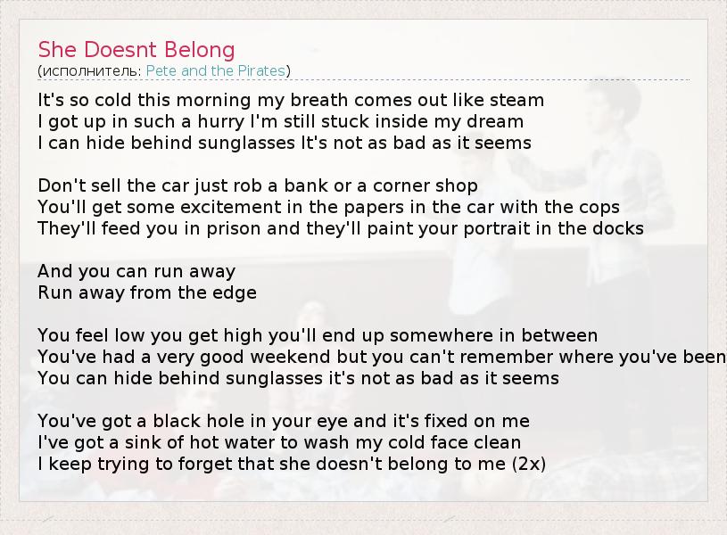 А как ты думаешь, о чем песня "She Doesnt Belong" ?