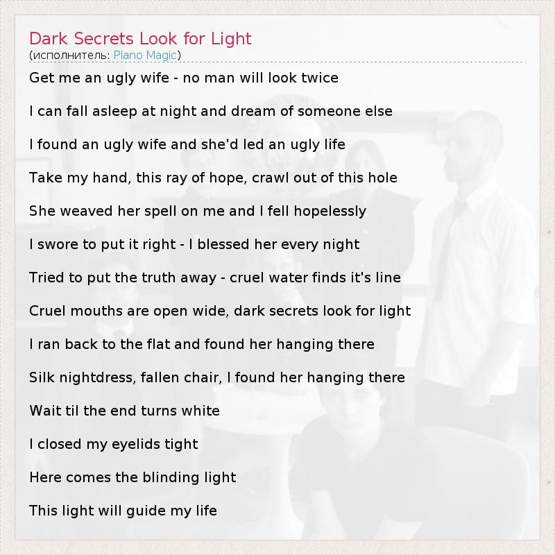 А как ты думаешь, о чем песня "Dark Secrets Look for Light" ?