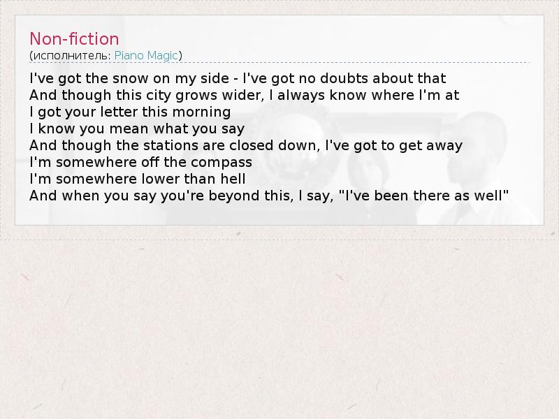 А как ты думаешь, о чем песня "Non-fiction" ?