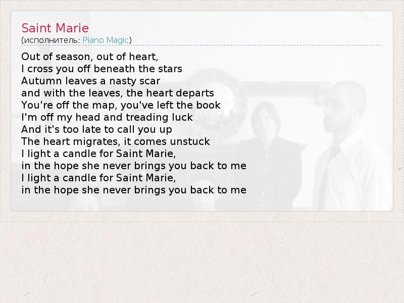 А как ты думаешь, о чем песня "Saint Marie" ?