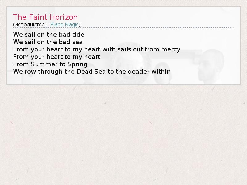 А как ты думаешь, о чем песня "The Faint Horizon" ?