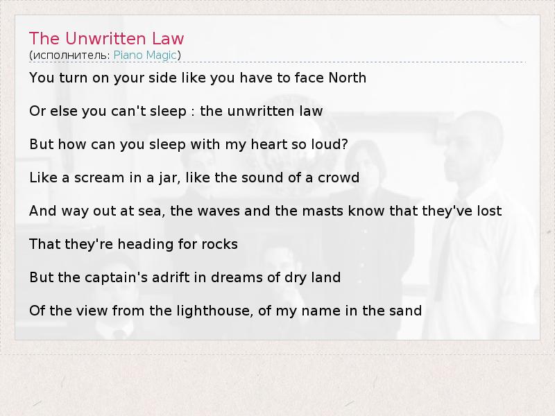 А как ты думаешь, о чем песня "The Unwritten Law" ?
