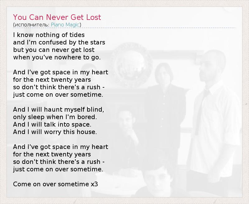 А как ты думаешь, о чем песня "You Can Never Get Lost" ?