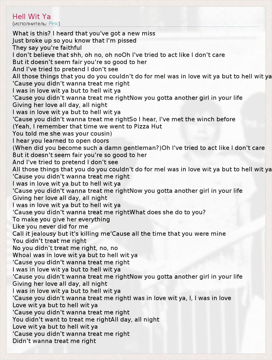 All those things that you do you couldn't do for meI was in love wit ya but to hell wit ya