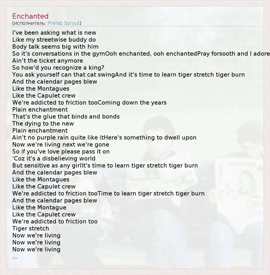 А как ты думаешь, о чем песня "Enchanted" ?