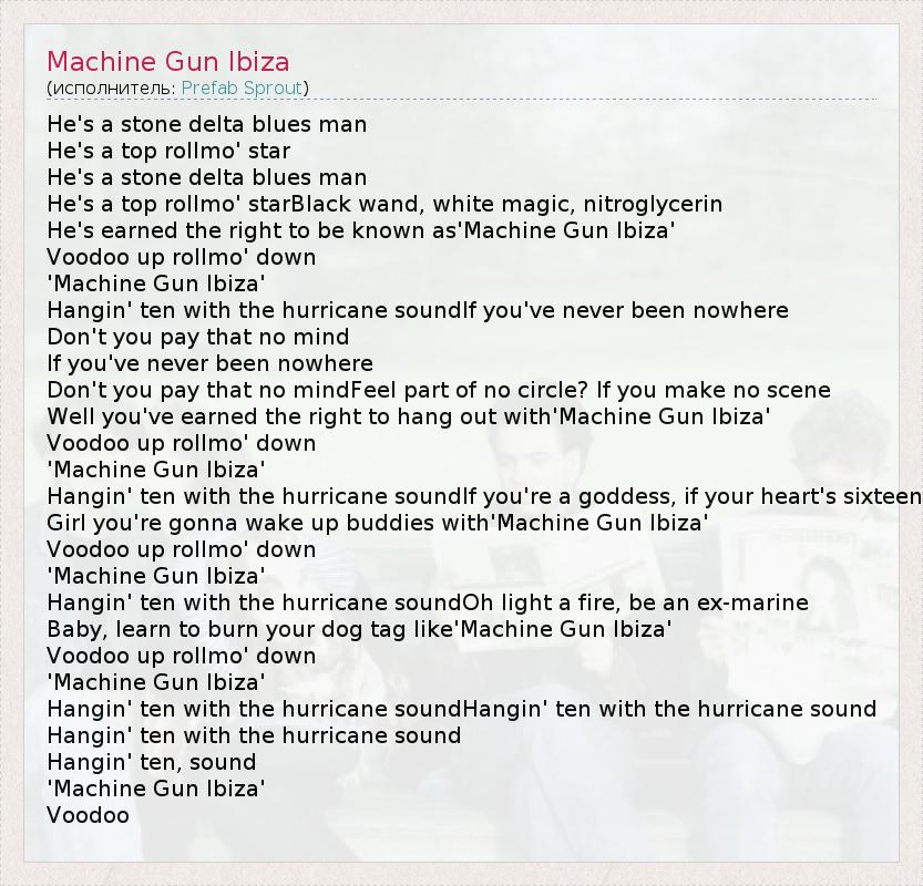 А как ты думаешь, о чем песня "Machine Gun Ibiza" ?