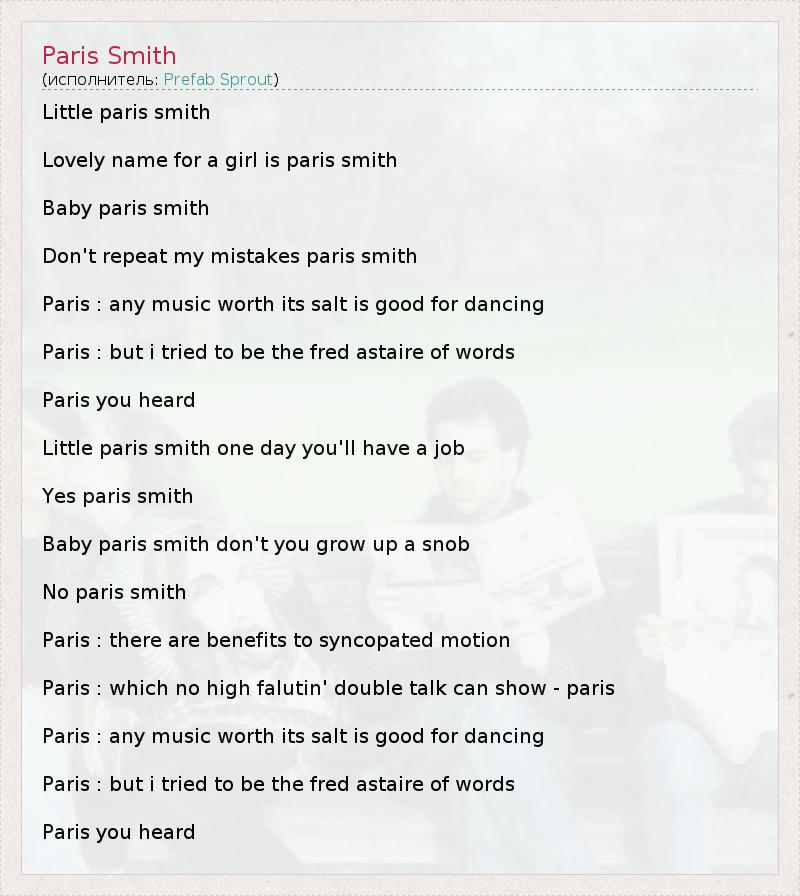 А как ты думаешь, о чем песня "Paris Smith" ?
