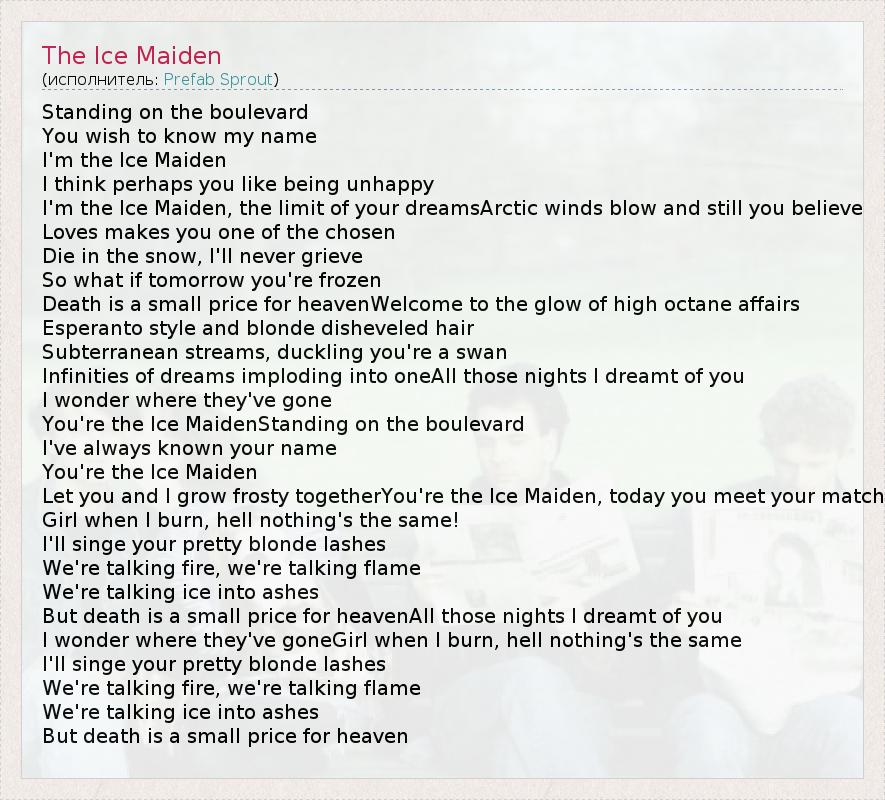 А как ты думаешь, о чем песня "The Ice Maiden" ?