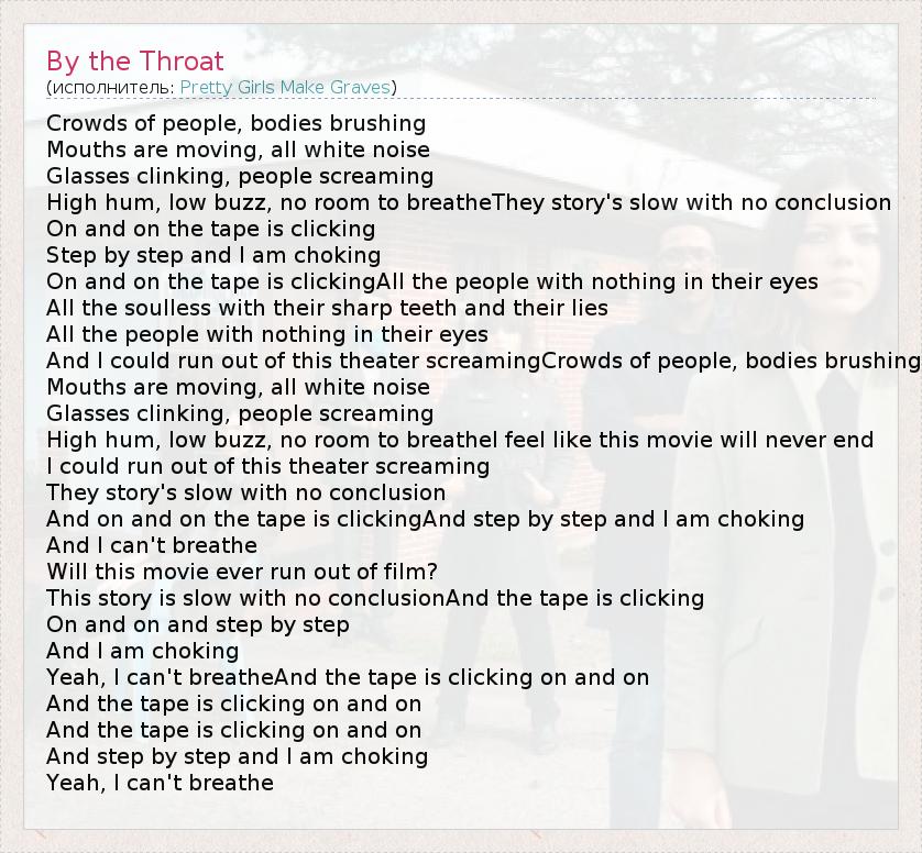 Это интересно:Прогресс налицо: если верить названию группы, то симпатичные девушки ко всем своим достоинствам добавили еще и такое общественно полезное дело, как копание могил! Ну разве не прелесть? Куда приятнее ложиться в могилу, вырытую юной красавицей, нежели горбатым древним стариком, которых мы привыкли представлять в этой роли! Если же обратить внимание еще и на творчество Pretty Girls Make Graves (PGMG),... продолжение