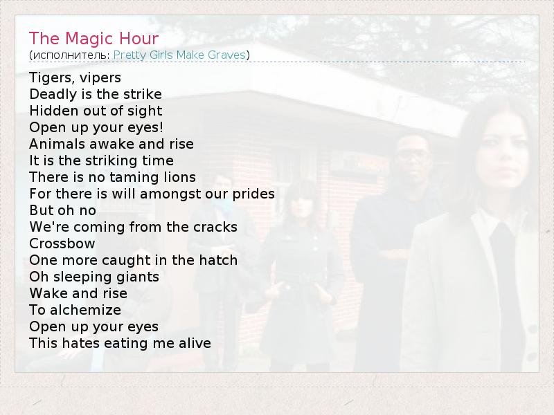 А как ты думаешь, о чем песня "The Magic Hour" ?