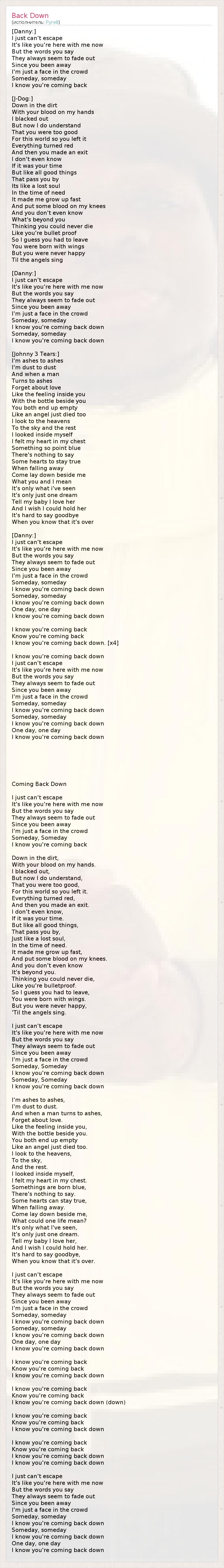 А как ты думаешь, о чем песня "Back Down" ?