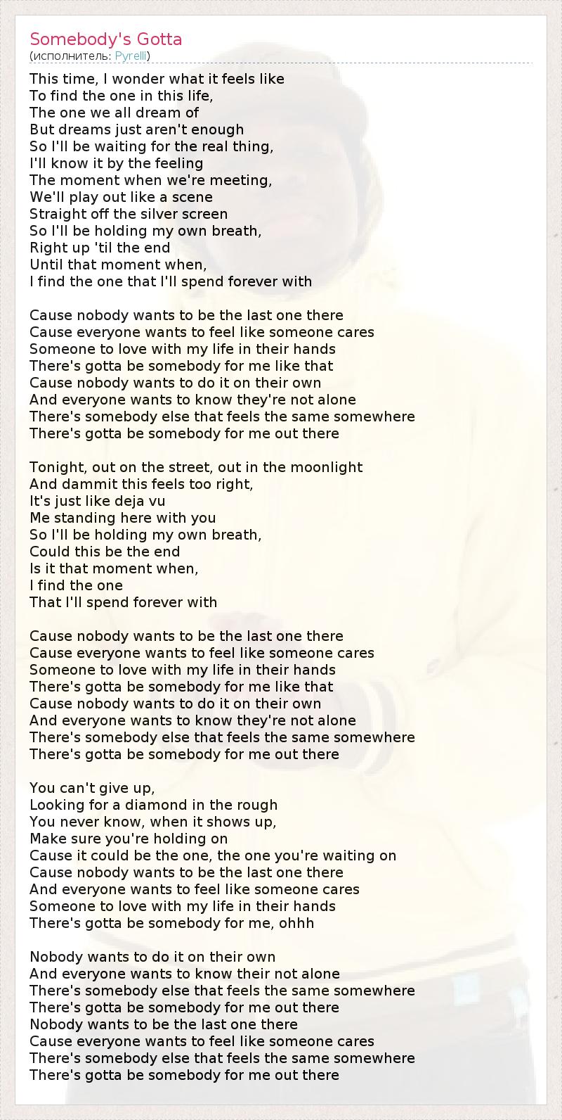 А как ты думаешь, о чем песня "Somebody's Gotta" ?