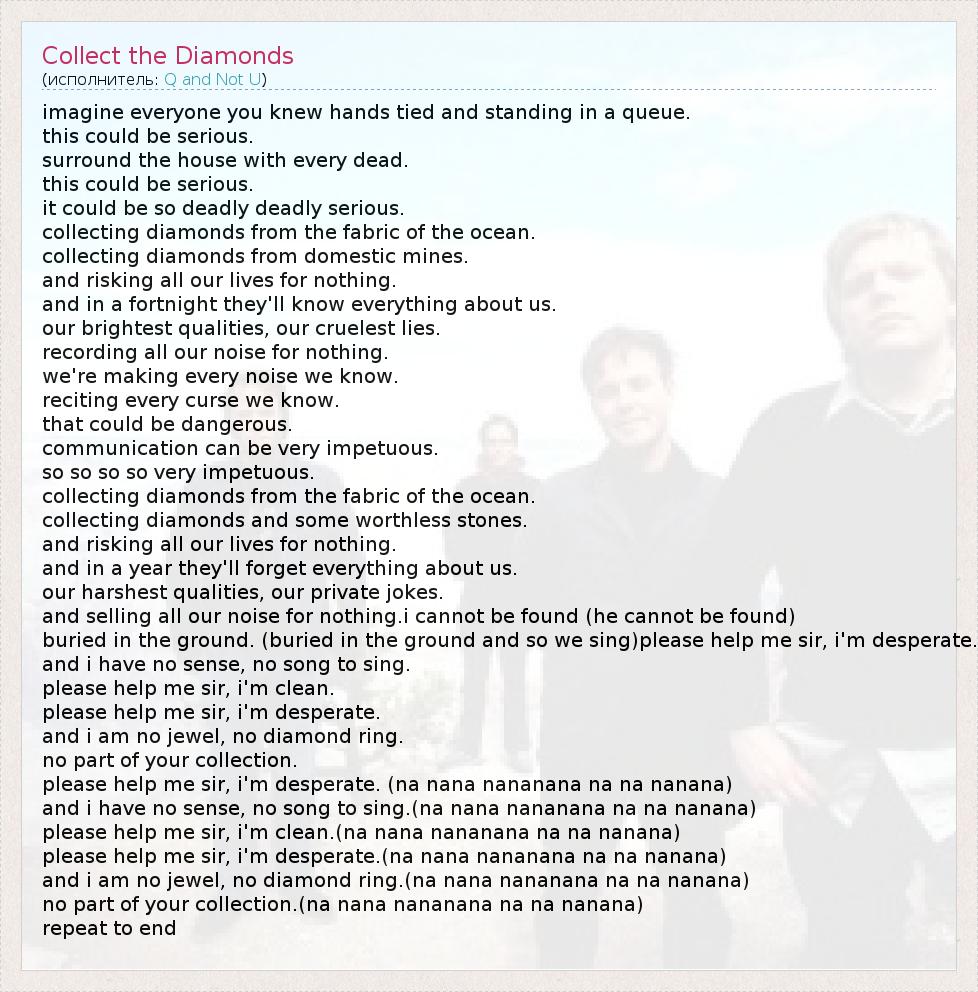 А как ты думаешь, о чем песня "Collect the Diamonds" ?
