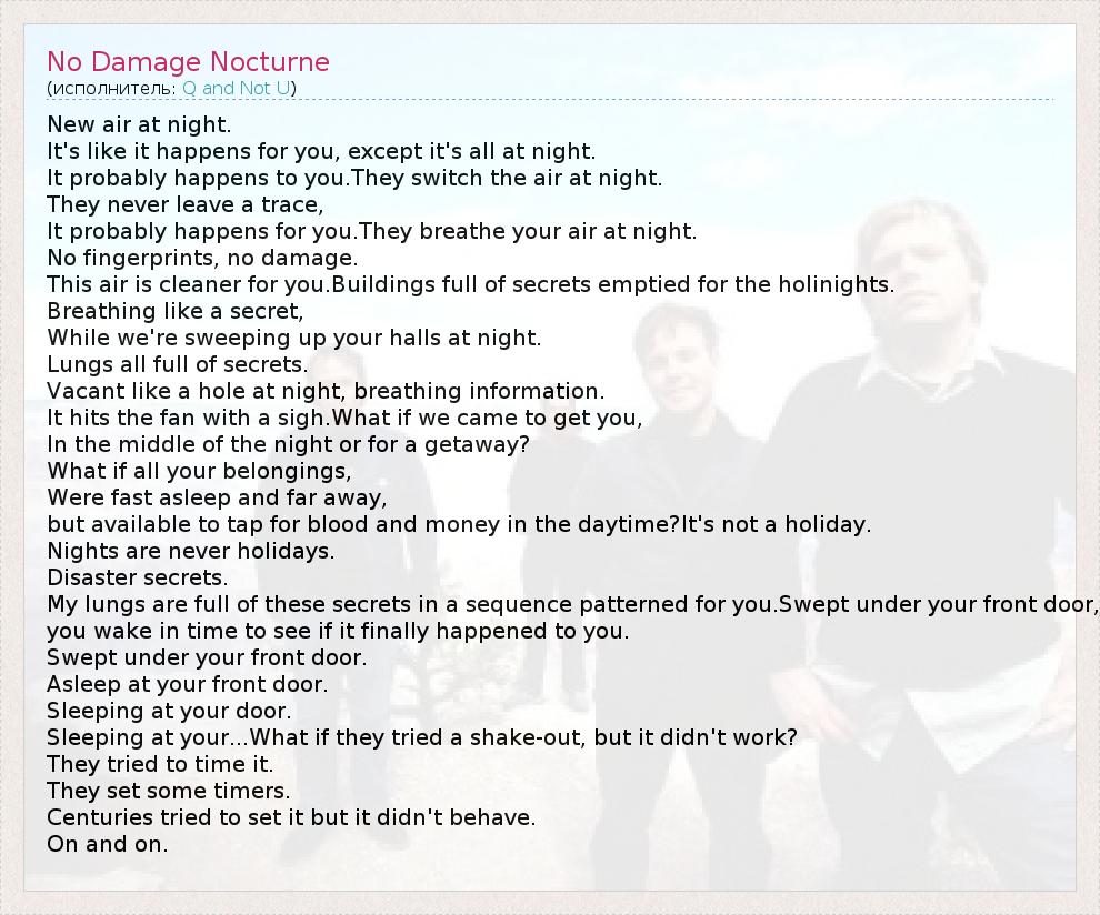 А как ты думаешь, о чем песня "No Damage Nocturne" ?