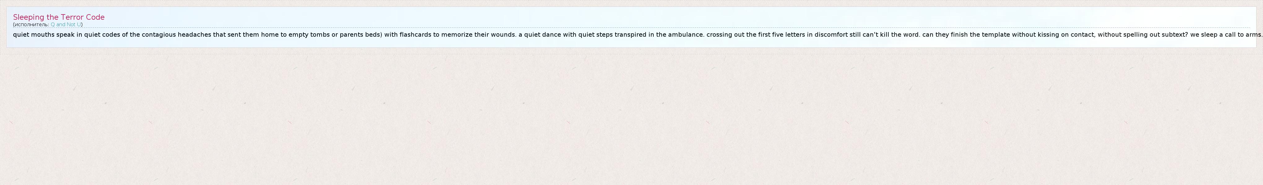 ГлавнаяИсполнителиQ and Not USleeping the Terror Code