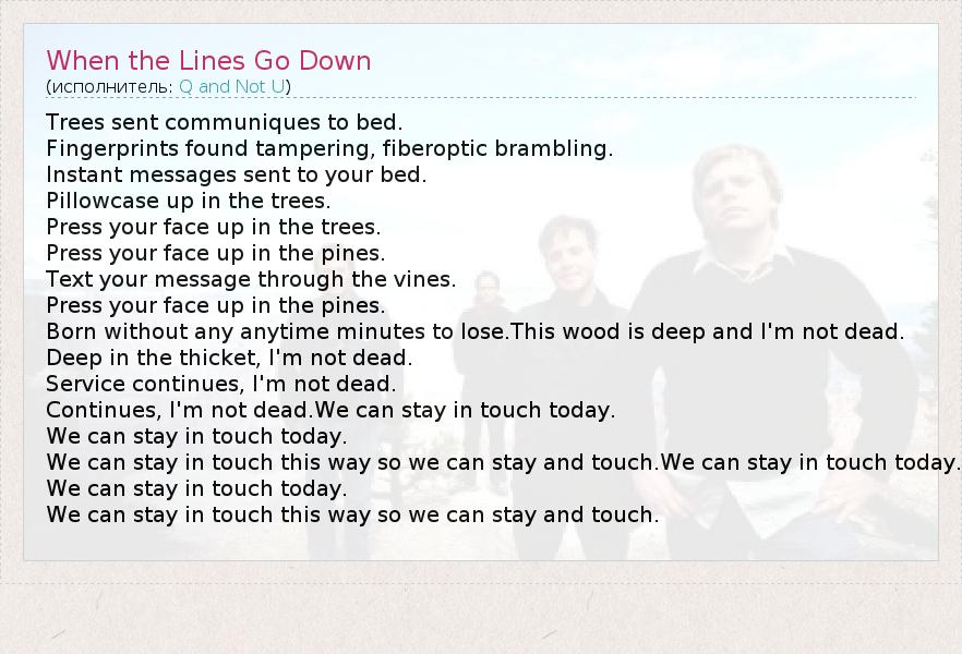 А как ты думаешь, о чем песня "When the Lines Go Down" ?