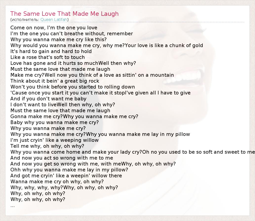 А как ты думаешь, о чем песня "The Same Love That Made Me Laugh" ?