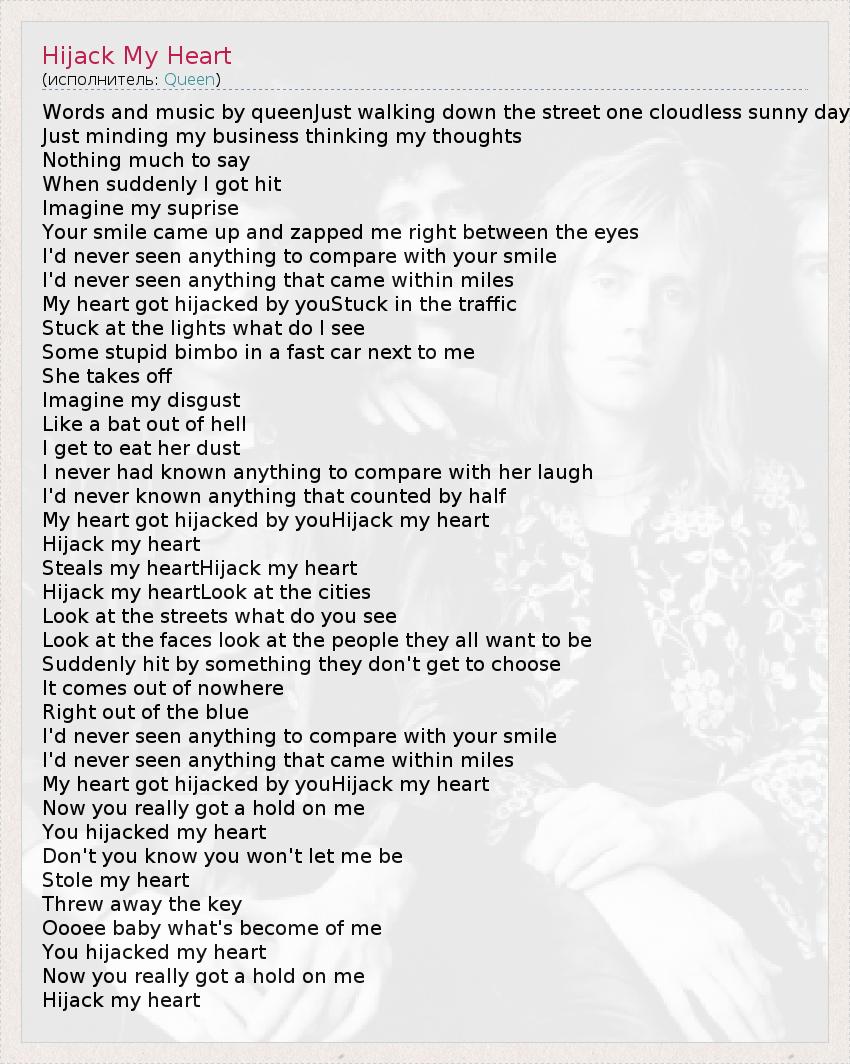 А как ты думаешь, о чем песня "Hijack My Heart" ?