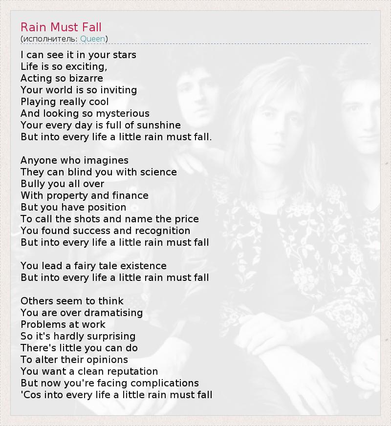 А как ты думаешь, о чем песня "Rain Must Fall" ?