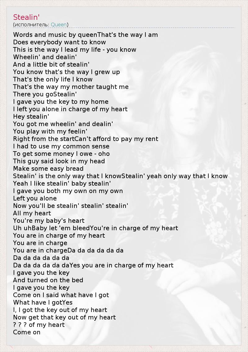 А как ты думаешь, о чем песня "Stealin'" ?