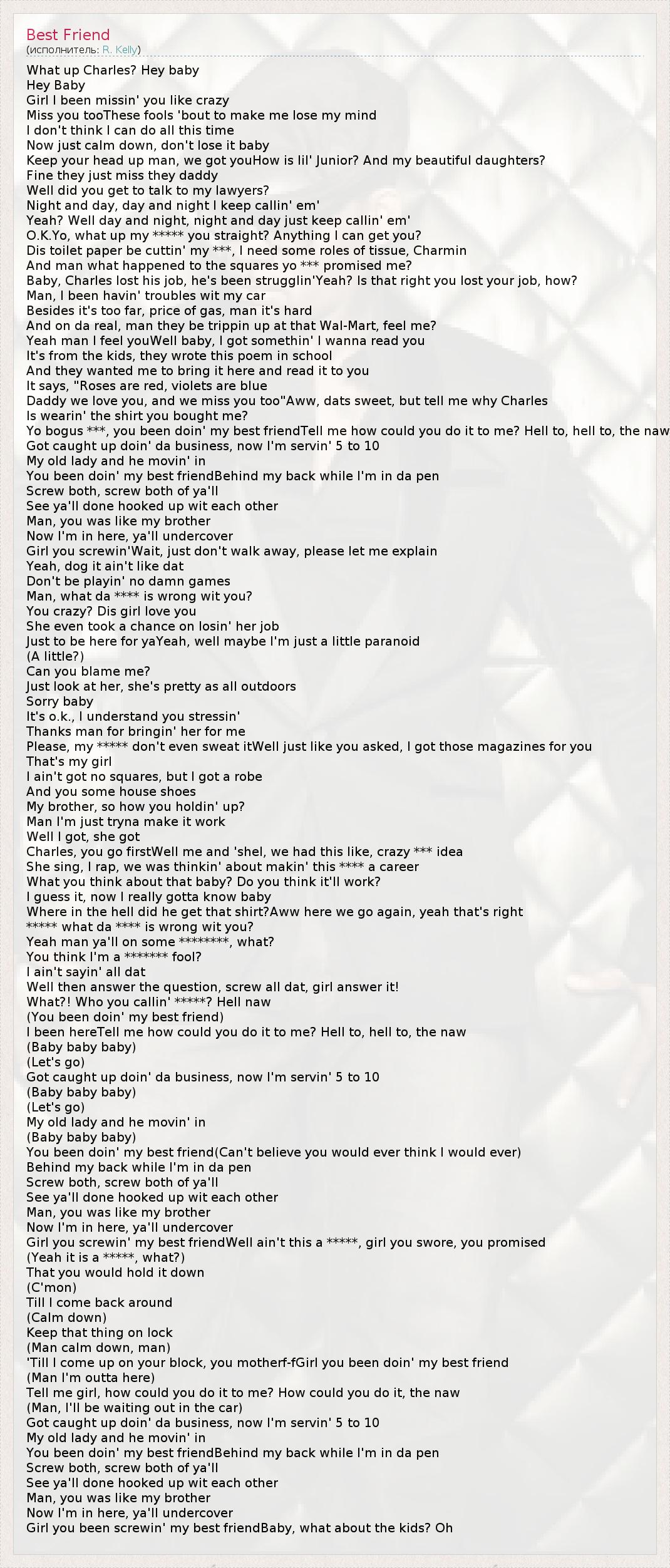 Girl you screwin' my best friendWell ain't this a *****, girl you swore, you promised