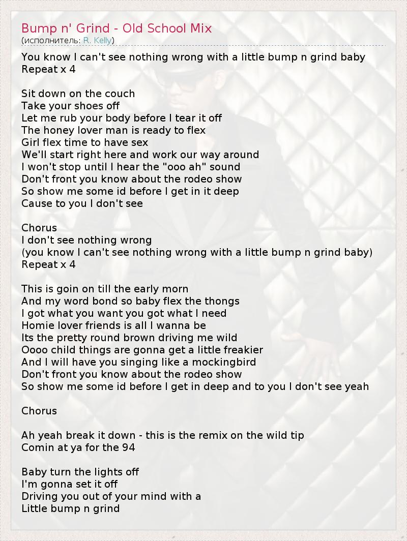 А как ты думаешь, о чем песня "Bump n' Grind - Old School Mix" ?